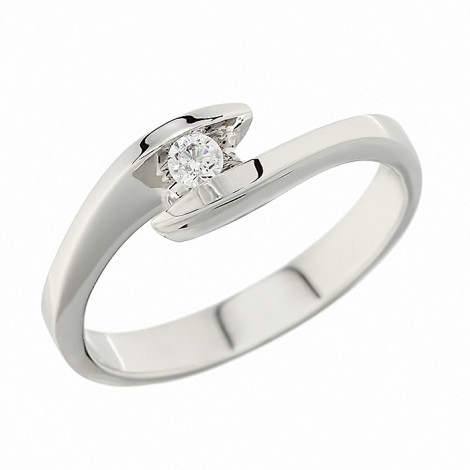 Κλασικό και κομψό μονόπετρο δαχτυλίδι με ιδιαίτερο δέσιμο που αναδεικνύει την λάμψη του διαμαντιού απο λευκόχρυσο Κ 18. Μπορεί να φορεθεί μαζί με την βέρα.