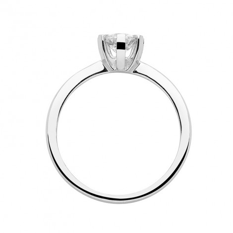 Κλασικό μονόπετρο δαχτυλίδι με διαμάντι με δέσιμο που αποτελείται από έξι δοντάκια για ακόμα μεγαλύτερη λάμψη, από λευκόχρυσο Κ18.