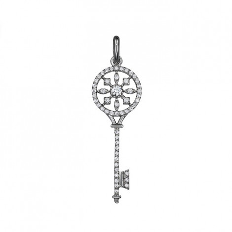 Μοντέρνο και εντυπωσιακό μενταγιόν κλειδί απο λευκόχρυσο Κ 14 με ζιργκόν. Για γυναίκες που θέλουν να ξεχωρίζουν σε κάθε τους εμφάνιση.