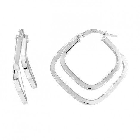 Μοντέρνο και ευκολοφόρετο ζευγάρι σκουλαρίκια με διπλό τετραγωνισμένο κρίκο και κίνηση από λευκόχρυσοΚ 14. Για γυναίκες που θέλουν να ξεχωρίζουν κάθε στιγμή της ημέρας.