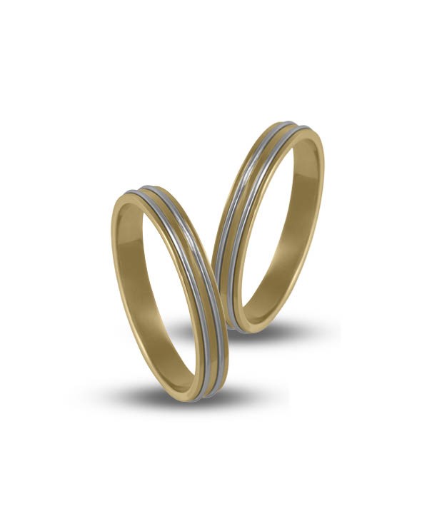 Μοντέρνες και λεπτές βέρες από λευκόχρυσο Κ 14 και δύο χρυσά βεράκια να τις διατρέχουν. Μπορούν να γίνουν απο χρυσό ή λευκόχρυσο ανάλογα με τις προτιμήσεις σας. Επικοινωνήστε μαζί μας για τις διάφορες παραλλαγές που μπορούν να γίνουν στις βέρες.