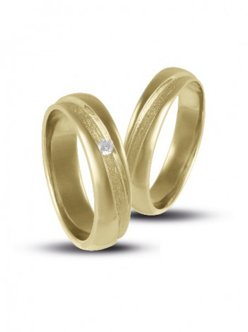 Μοντέρνες βέρες με διαμαντάκι στην γυναικεία βέρα απο χρυσό Κ 14 και σαγρέ φινίρισμα που τονίζει το λοξό τους σχέδιο. Μπορούν να γίνουν με ζιργκόν η γυναικεία, απο λευκόχρυσο ή ροζ χρυσό ανάλογα με τις προτιμήσεις σας. Επικοινωνήστε μαζί μας για τις διάφορες παραλλαγές που μπορούν να γίνουν στις βέρες και τις αντίστοιχες τιμές τους.